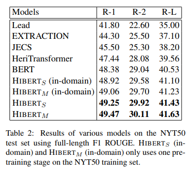 代表论文:HIBERT: Document Level Pre-training of Hierarchical Bidirectional Transformers for Document Summarization