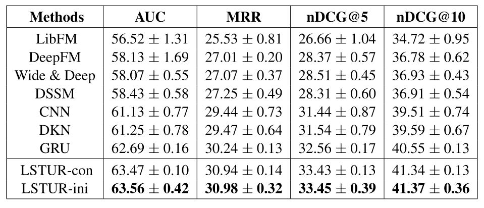 代表论文:Neural News Recommendation with Long- and Short-term User Representations