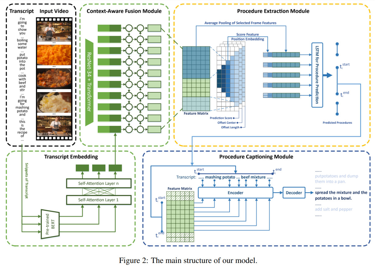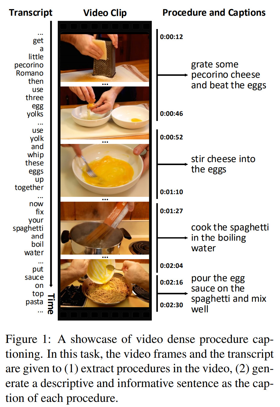 这项工作通过Azure Speech to Text云服务从视频中抽取旁白中Transcript。在YouCook II数据集上的Procedure Extraction和Procedure Captioning任务上都取得了最好的成绩。