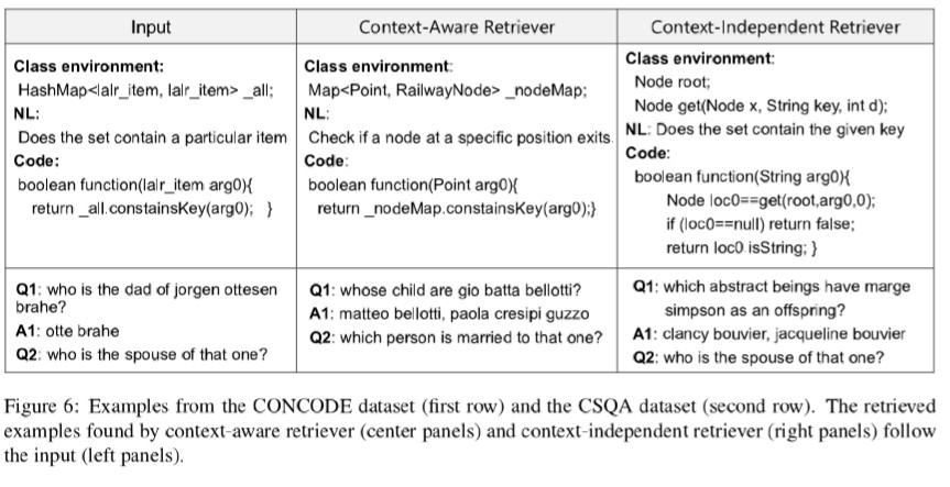 图10:检索模型在CONCODE和CSQA数据集上的结果展示