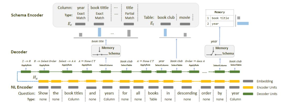近年来,通过自然语言直接生成SQL查询语句引起了越来越多的关注。目前比较先进的模型在已有的NL-to-SQL的数据集上(例如WikiSQL、ATIS、GEO等)都取得超过80%的准确率。然而,在最近发布的Spider数据集上,这些已有的模型并没有取得令人满意的效果。究其原因,Spider数据集有两个特点:首先,Spider数据集里的SQL查询语句比目前已有的Text-to-SQL数据集更加复杂,例如SQL语句中包含GROUPBY、HAVING、JOIN、NestedQuery等部分。通过自然语言生成复杂的SQL查询语句尤其困难,本质原因是面向语义的自然语言和面向执行的SQL查询语句之间不匹配,SQL越复杂,不匹配的越明显;其次,Spider数据集是跨领域的(cross-domain),即训练和测试是在完全不同的database上做的。在跨领域的设置下,自然语言中出现了大量的out-of-domain(OOD)的单词,给预测列名造成了困难。