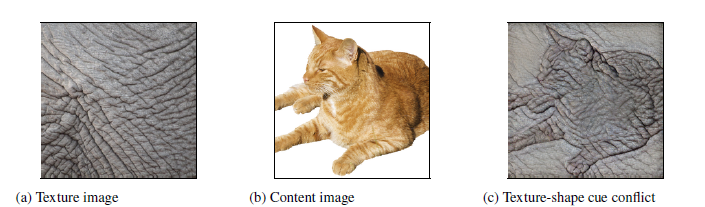 图1:(a)大象纹理图像;(b)猫图像;(c)用大象纹理取代猫皮毛纹理的图像。图片来源:https://openreview.net/pdf?id=Bygh9j09KX