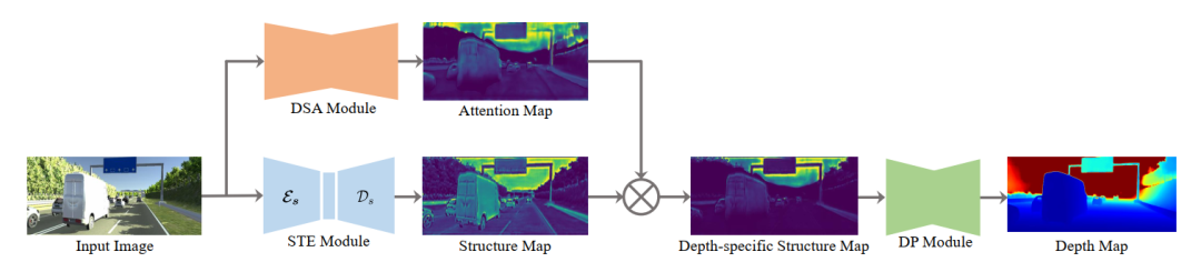 具体的研究思路是:考虑到人类视觉系统更依赖结构信息来进行感知,例如人可以从仅包含结构信息的草图中获取场景的深度信息,研究员们通过对图像中的结构信息和纹理信息进行解耦,先提取图像中的结构信息,去除无关的纹理信息,再基于结构信息进行深度估计。