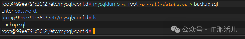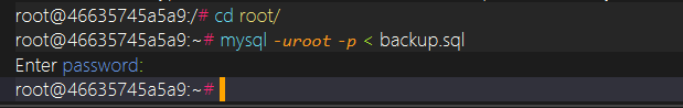 连接到新的MySQL容器,并将之前备份的数据导入新的数据库实例。