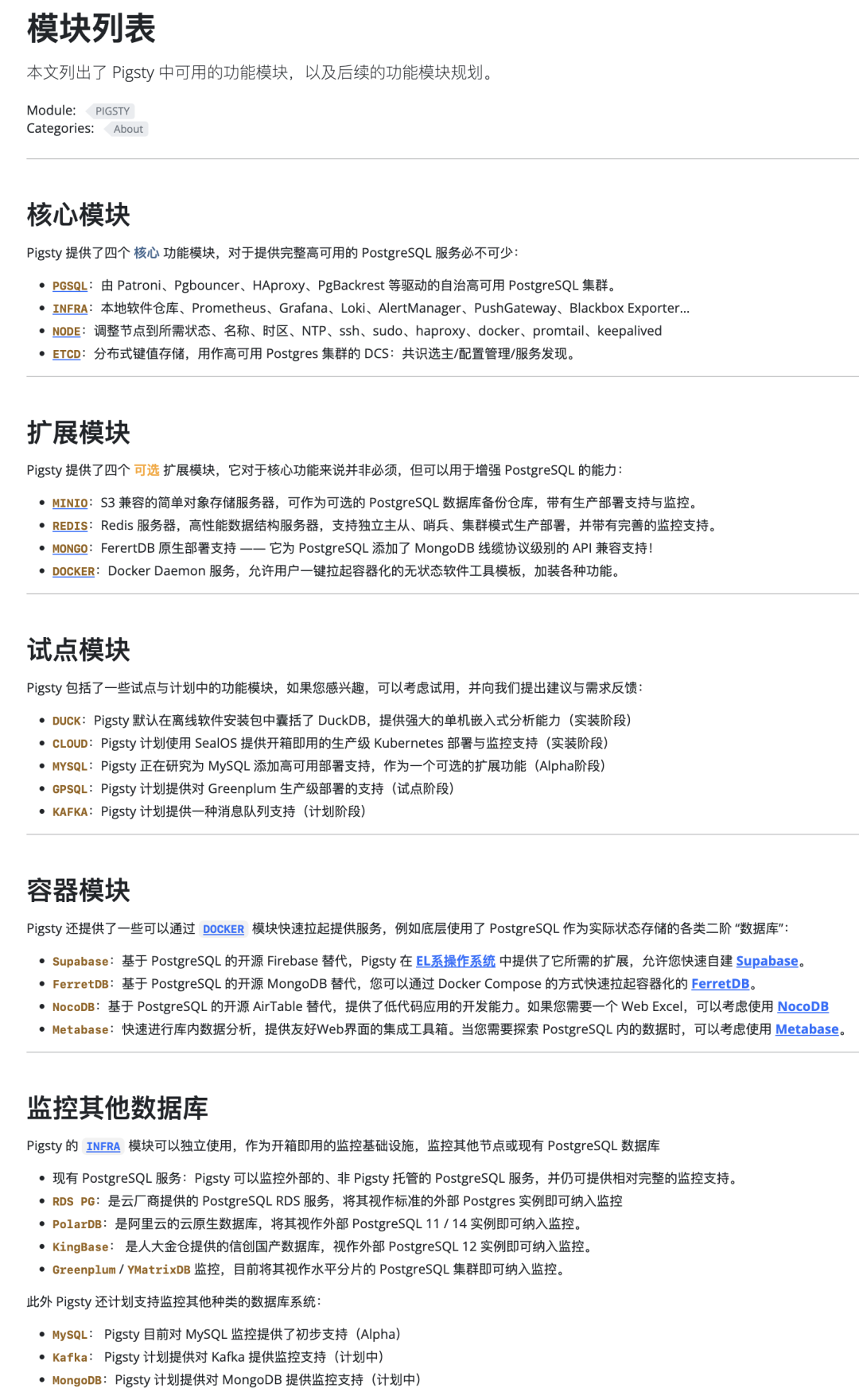并不是说这些功能在开源版 Pigsty 里就没有了,我相信开源老师傅还是可以很轻松的仅仅通过修改配置文件就把它们重新弄出来,但这些功能不会成为开源版本的默认组成部分了。