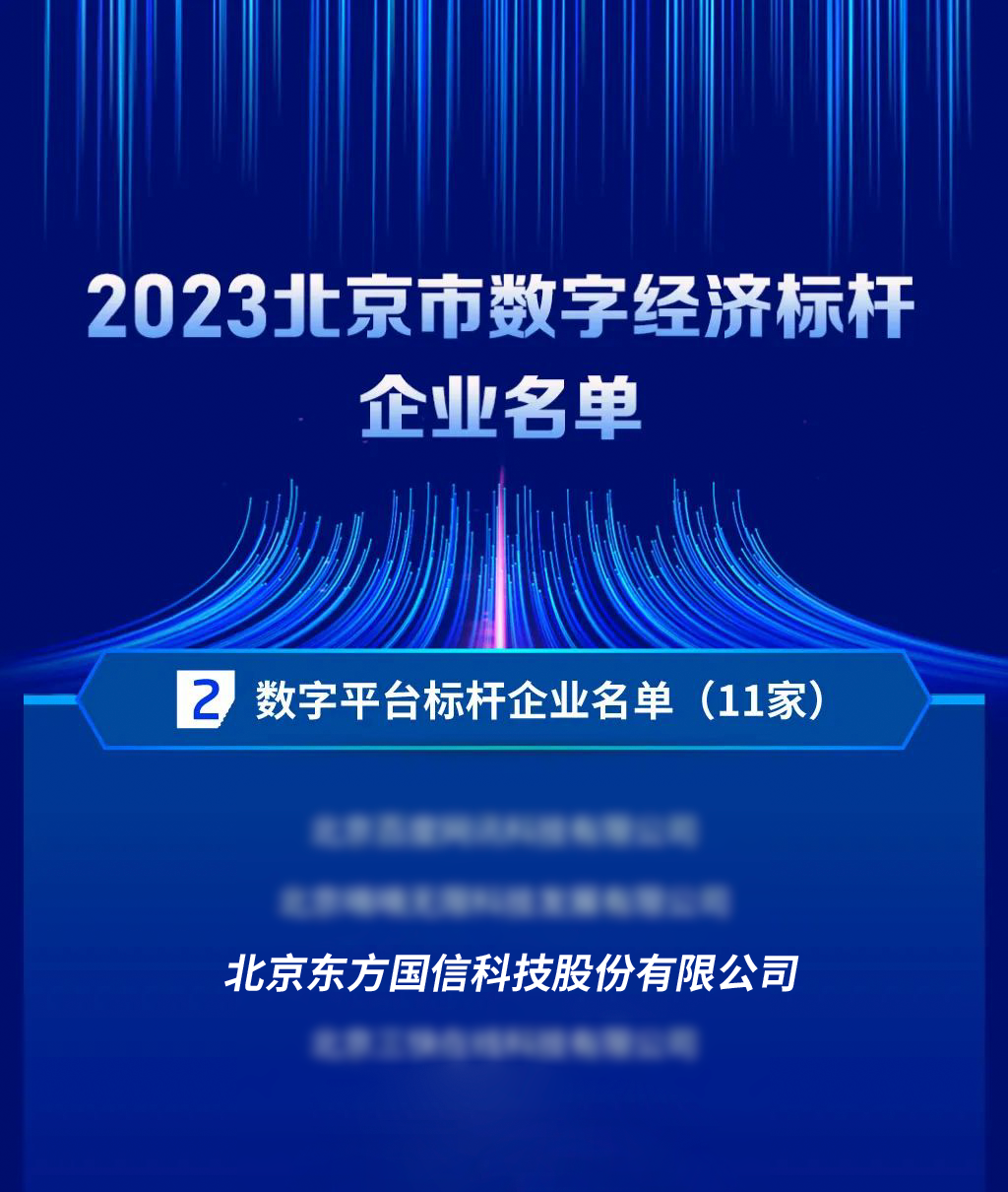 2024年2月29日,“2023北京市数字经济标杆企业评价报告发布会”在北京数据基础制度先行区召开,会上发布了2023北京市数字经济标杆企业名单,东方国信凭借深厚的技术沉淀与平台服务能力成功获评“数字经济标杆企业”称号。