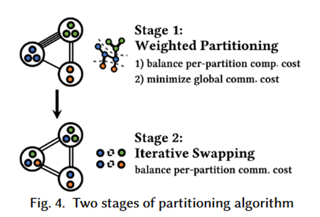 G3通过基于局部性的划分策略和多级流水线调度,在worker之间平衡工作负载,并在层间和层内训练过程中重叠计算与通信。G3的两步划分策略如下图所示。