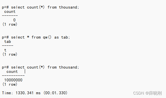 p=# create table thousand (id int,a int,name varchar(10),time date);