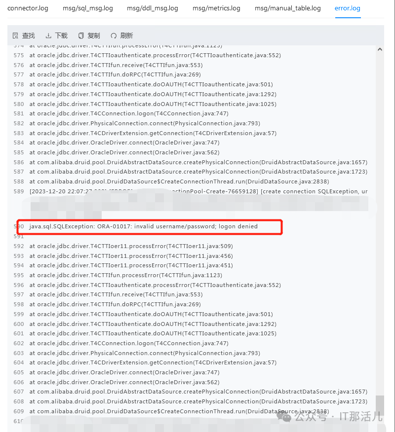 OceanBase反向同步修改Oracle端用户密码后重启writer时报错