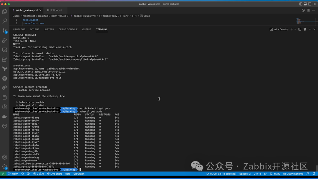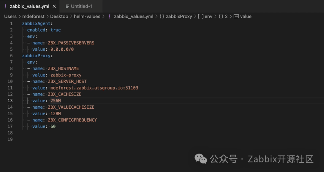 根据您的情况,您需要为安装设置一些值。在大多数情况下,您只需要为Zabbix Agent和Proxy设置一些环境变量。完整的值和环境变量列表可在Helm Chart存储库中找到,以及Docker Hub上的Zabbix Agent和Proxy镜像。