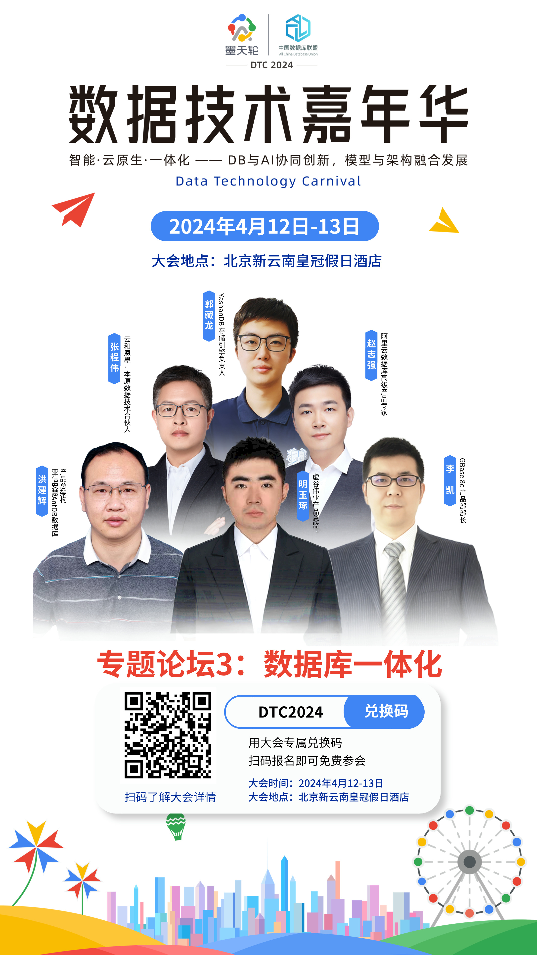 0元购票福利:👉进入数据技术嘉年华官网 ( https://www.modb.pro/dtc2024 ),购票时使用专属优惠码【DTC2024】即可免费购买普通门票一张,数量有限,先到先得!