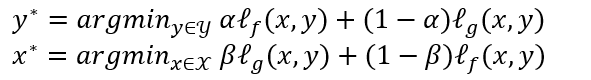 对于对称的场景,x和y中的元素形式相同,因而有可能使用相同的模型结果来对对偶学习中的两个任务进行建模。例如,在神经机器翻译和Q&A中,x和y中元素都是自然语言的句子,因此我们都可以用LSTM来为f和g进行建模。