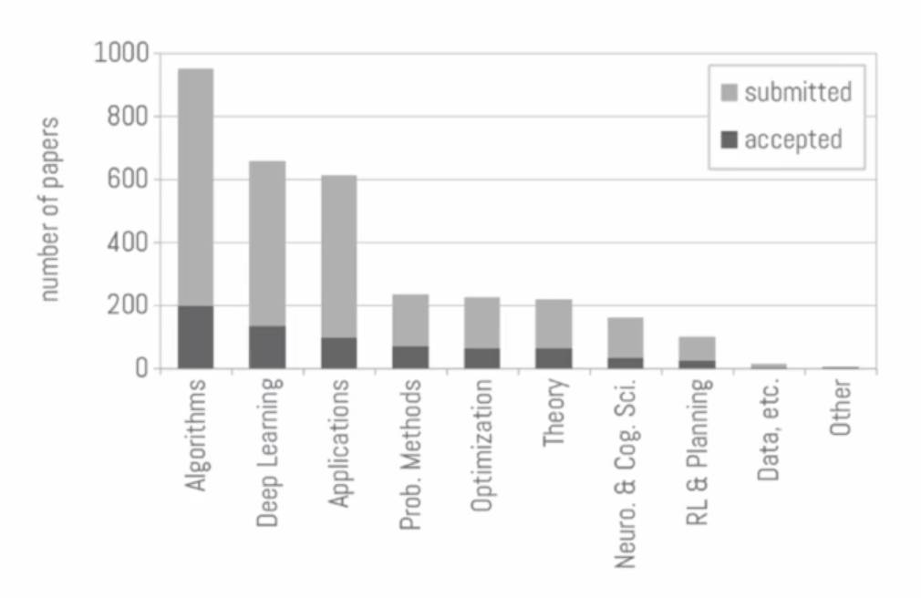 本次大会的内容涵盖了机器学习、神经科学、认知科学、心理学、计算机视觉、统计语言学和信息论等156个领域。在今年提交的3240篇论文中,679篇被接受,接受比例只有21%,入选论文中有527篇posters,112篇spotlights和40篇orals。