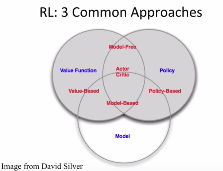 具体来说,tutorial 先是介绍了强化学习的相关背景和最近大家关注的一些题目。例如最基础的MDP 的定义,强化学习通常的setting,常用的解决强化学习问题的三个方法论:value function based、policy based、model based,以及它们之间的一些关系。
