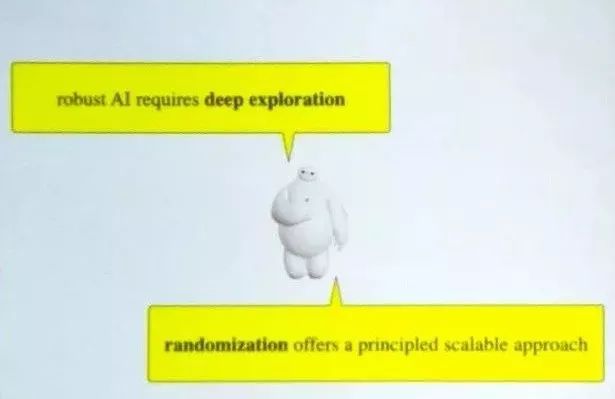 来自加拿大麦吉尔大学的Joelle Pineau 做了题为Reproducibility in Deep Reinforcement Learning and Beyond 的invited talk。内容是最近大家特别关注的强化学习中实验结果可重复性的相关内容,相信也引起了大部分强化学习领域的研究者的共鸣,引发了大家对于实验结论可靠性的思考和质疑。来自斯坦福大学的Ben Van Roy 做了题为Deep Exploration Via Randomized Value Functions的invited talk,带着大家一起探讨了deep exploration在强化学习问题中的重要性以及解决办法, 表明了更鲁棒的AI需要一个更有效的deep exploration策略的观点。
