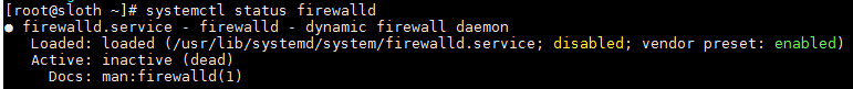 如果显示以下内容则说明防火墙已关闭,状态为inactive