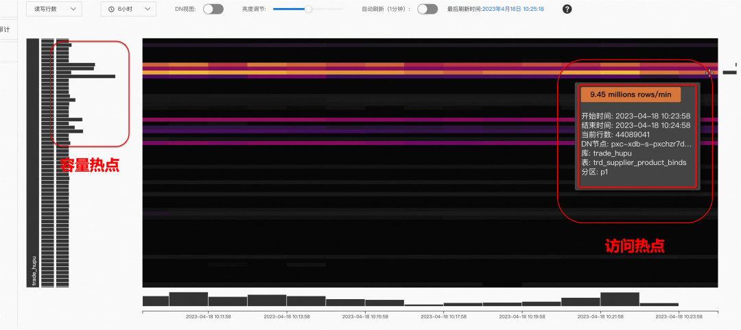 为了解决上述困扰,PolarDB分布式版提供了热力分区的功能,通过可视化的方式,实时观测各个节点的容量瓶颈和访问瓶颈,准确定位大大降低了迁移和日常运维的难度。