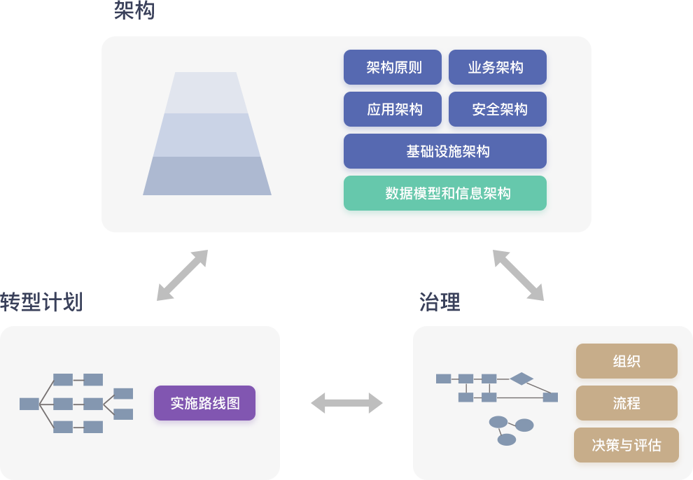 多人交互、协作的敏捷数据服务可以快速展现短期收益,但另一方面这种方式会导致碎片化,形不成体系,数据资产仍然无法得到有效利用。难以发现各业务域之间的关联关系及数据流转。所以我们在Roadmap的规划中要考虑顶层设计、管理预期、发现依赖关系、防止数据资产碎片化,从数据资产角度尤其是数据模型的设计。
