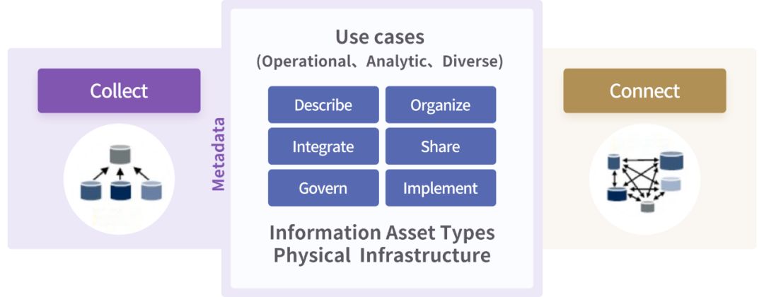 未来无论数据是在本地、云端、某个设备感应器上或任何地方,我们都可以在数据保留在原地的情况下,将它们关联起来,而无须采集到特定地方。在未来增强式的数据管理的环境中,自动发掘数据、透过机器自动意识识别数据中的价值、认定有价值的数据、分析数据、自动采用适合数据的安全措施、分享数据、优化数据。最终实现在最短时间内将精准的数据发送给对的人,对于企业机构至关重要。即下图由左到右的过程,采集元数据后,通过数据的使用场景及机器学习发现数据之间的关联关系,最终形成数据资产知识图谱。