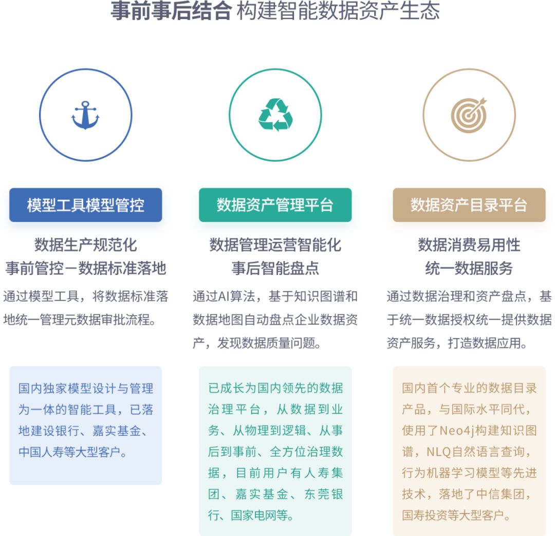 Datablau的数据治理解决方案针对上面三种场景的三个产品线: