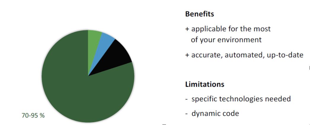 自动解析当前主要的收集方法,具体就是解析SQL语句,存储过程,ETL过程等文件。因为复杂代码和应用环境等原因,根据国际厂商的经验,自动解析可以覆盖到企业数据的70-95%,目前无法做到100%,因此患有技术洁癖的负责人容易犯下这个错误,即追求极高的覆盖率。