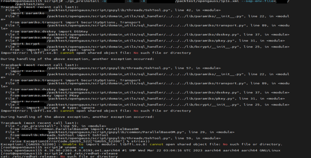 问题3:预安装报错,文件目录的权限属组未更改或部分未更改
