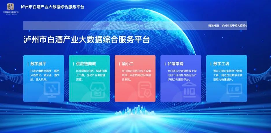 依托中国电子核心能力和优势资源,根据泸州市经济和信息化局、泸州市酒业发展促进局的指示和要求,基于“1+6+7”体系架构建设的泸州市白酒产业大数据综合服务平台,打造了1个酒类行业数据金库,分别面向政务服务、企业服务、行业服务、产学研服务、消费者服务、产业链管理6大服务方向,建设酒业驾驶舱经济监测系统、酒管家政务管理系统、酒小二企业服务系统、数字工坊数字化转型集市、泸酒学院在线直播学习平台、数字展厅泸酒线上展馆、供应链商城7大场景应用,综合赋能“政、产、学、研、金、服、用”7大主体。