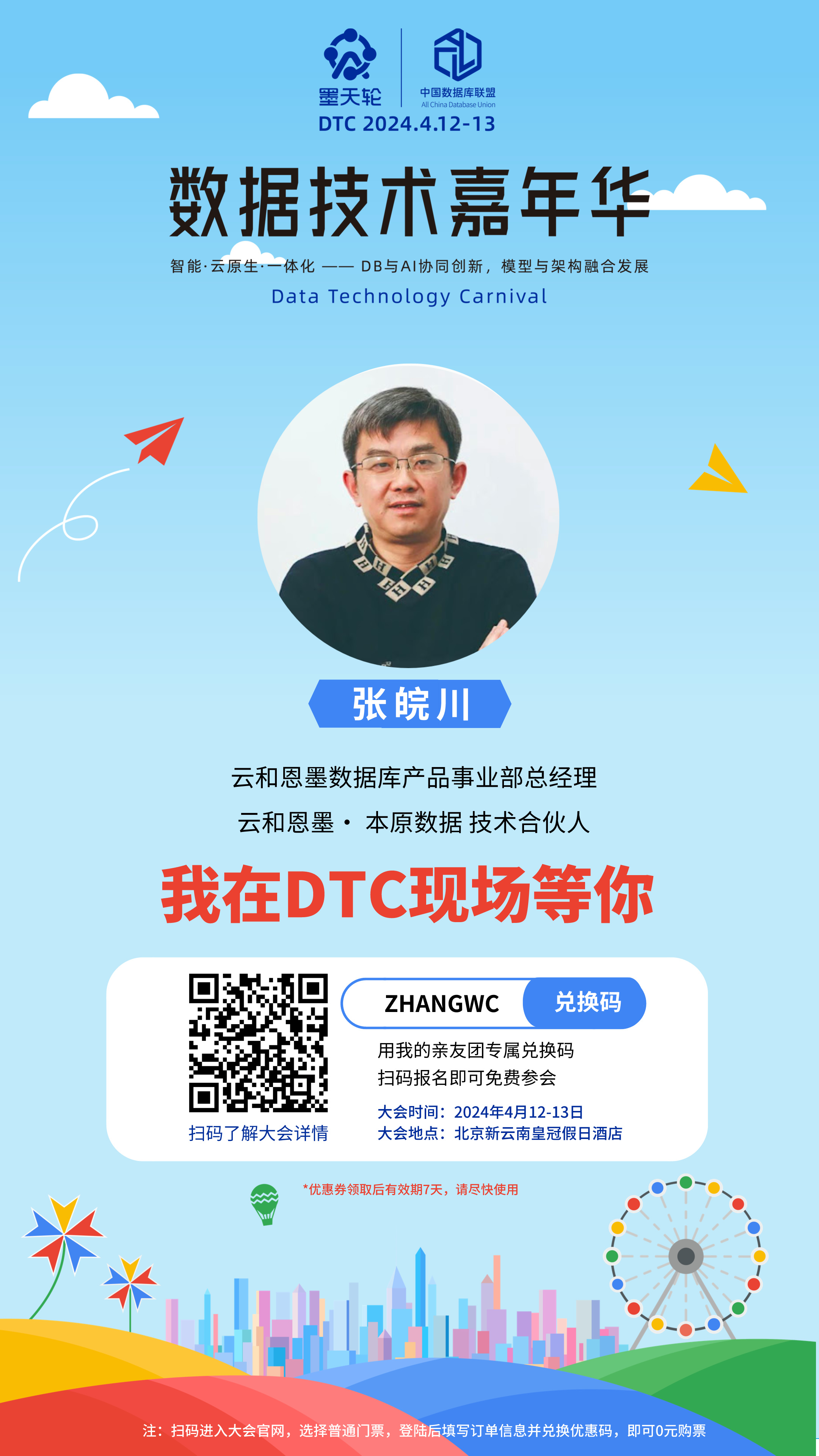 即日起,扫描下图二维码,使用张皖川亲友团专属兑换码(ZHANGWC)即可领取2024数据技术嘉年华“免费门票”。