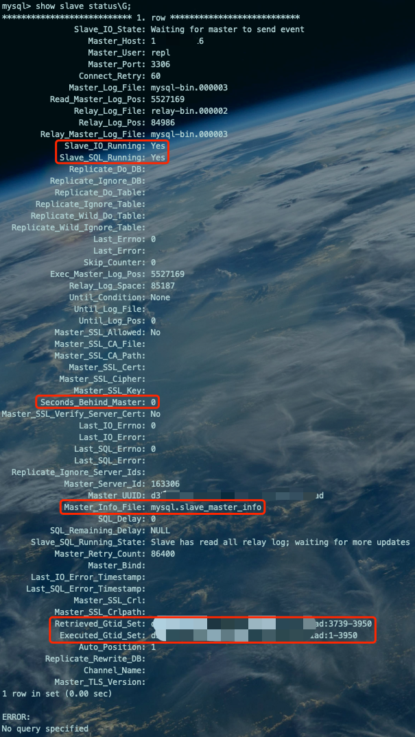 SELECT * FROM mysql.slave_master_info;SELECT * FROM mysql.slave_relay_log_info;