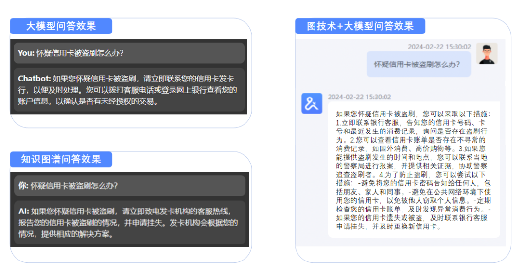 目前,国内已有图技术厂商对大模型和图技术的融合展开研究实践。以创邻科技针对信用卡场景打造的智能问答平台为例,该平台通过图技术和通用大模型的协同工作,优化大模型框架的逻辑推理能力的同时拓展了其原始知识边界,让生成式回答的灵活开放性与精确性并存。