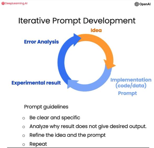 这个过程是迭代的,意味着你会不断重复这个循环,每一次都根据之前的反馈来调整和改进你的提示,直到实验结果符合你的预期。