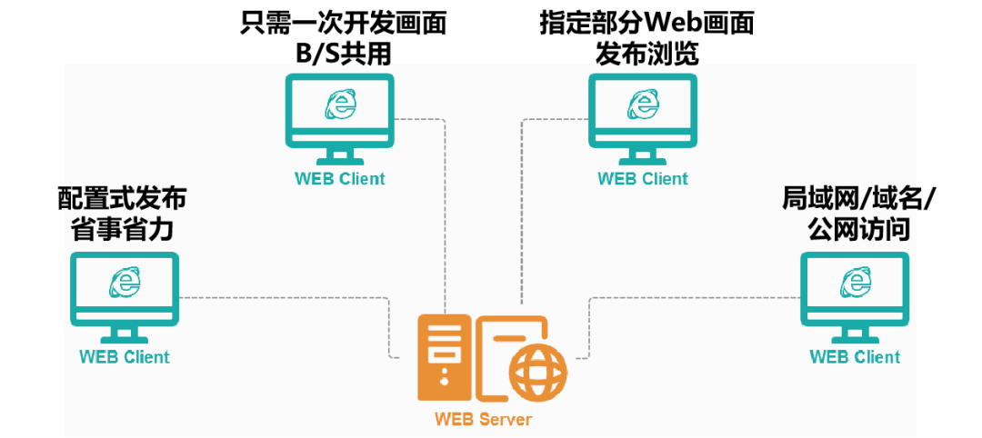 Web发布功能,采用B/S结构,客户可以随时随地通过Internet/Intranet实现远程监控。客户端有着强大的自主功能,Internet/Intranet网络上的任何一台PC机都可以通过浏览器浏览工业现场的实时画面,监控各种工业数据,实现了对客户信息服务的动态性、实时性和交互性。