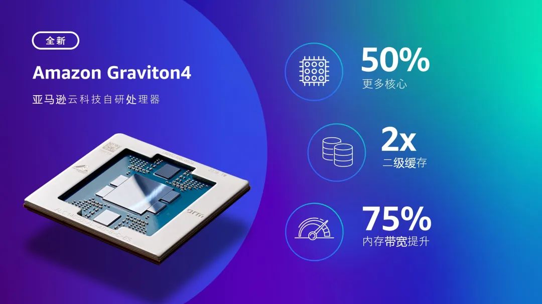 亚马逊云科技拥有广泛的计算实例选择,涵盖多种云端处理器架构,目前已经构建了虚拟化系统/通用计算/ AI 加速三条芯片产品线,自研芯片也在不断升级。在 re:Invent 2023,亚马逊云科技全球发布 Graviton4 和 Trainium2,为各种工作负载提供了卓越的性能和成本优化。2018年,亚马逊云科技发布第一代 Graviton 芯片,成为全球首家开发处理器的云厂商。今年,亚马逊云科技已拥有超过150种基于 Graviton 的实例,全球超过5万客户在使用 Graviton 实例来获取性价比优势。例如 SAP,他们在使用 Graviton 服务之后,成本降低了35%,而且分析速度更快,同时减少了45%的碳排放量。