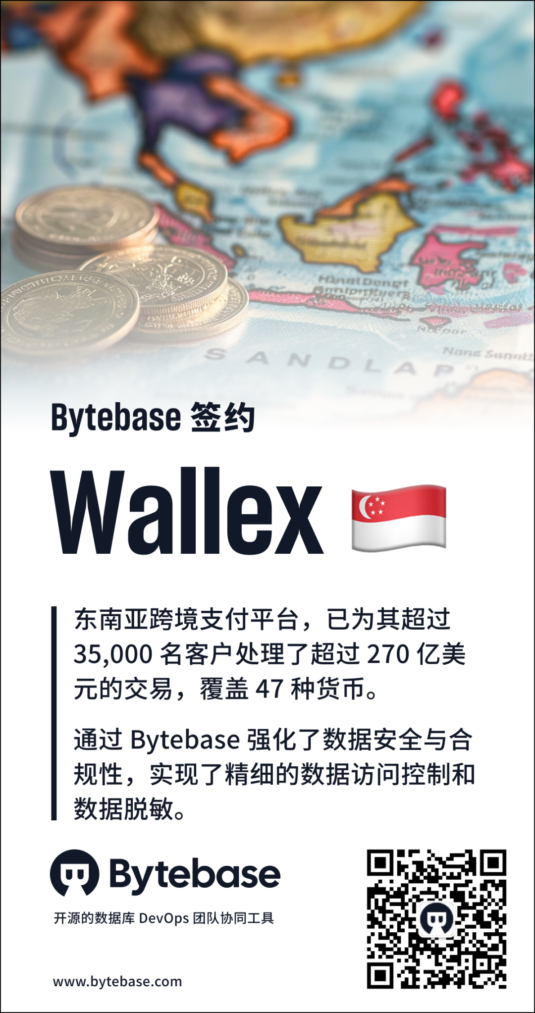 在这个数字化迅猛发展的时代,高效的数据库权限管理不仅是保护用户数据安全的关键,也直接关系到企业的声誉。最近,数据库 DevOps 团队协同管理工具 Bytebase 签约跨境支付企业 Wallex,旨在全面优化数据库权限管控,保障数据安全,满足审计合规需求。Wallex 是一家总部位于新加坡 🇸🇬 专注于提供多货币解决方案的平台,旨在帮助企业和金融科技公司简化全球支付和外汇转换流程。它允许企业以近乎中间市场的汇率进行货币转换,同时减少隐藏费用,从而提高资金的管理效率和成本效益。已为其超过 35,000 名客户处理了超过 270 亿美元的交易,覆盖 47 种货币。于 2022 年被 M-DAQ Global 收购,作为其子产品。Wallex 通过引入 Bytebase 强化了数据安全与合规性,实现了精细的数据访问控制和数据脱敏,确保客户数据的安全性,并符合合规审计要求。依赖于 MySQL、Postgres 和 Snowflake 等主要数据库系统,Wallex 存储了大量敏感信息。在被 M-DAQ 收购后,为了降低数据泄露的风险并保护公司声誉,Wallex 对数据管理解决方案进行了深入调研。Bytebase 的功能满足了他们的需求,通过 Bytebase,Wallex 统一了数据库权限管理,实现了高级别的数据脱敏和审计日志记录,以支持合规性。权限控制精细化至数据库和表级,实现定制访问;数据脱敏采用列级算法,针对不同角色实施分级脱敏及导出,确保数据分类和分级管理;审计日志全面记录访问行为,并支持导出功能,以满足合规审计要求。最迟但到的 Star History 2023 年度开源精选!