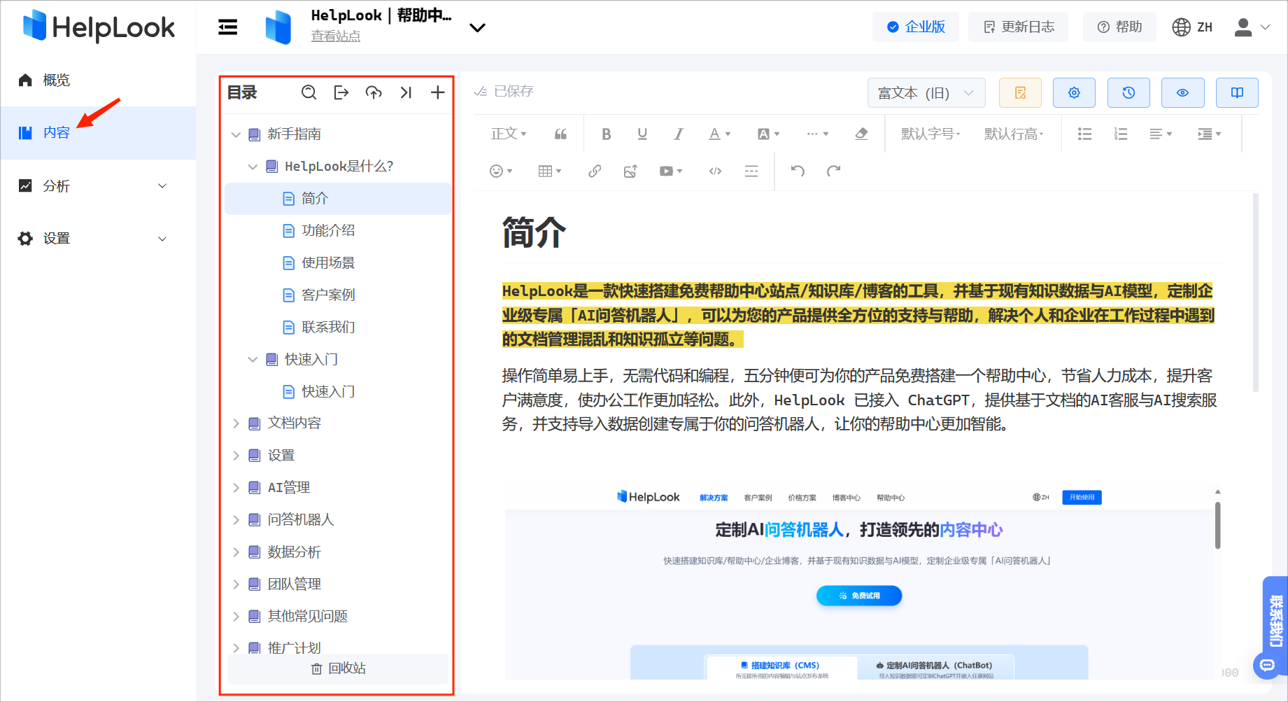 被广泛使用的内容管理平台有HelpLook、SharePoint、OpenText Content Suite等,但LookLook同学比较推荐HelpLook。下面是HelpLook的部分功能展示: