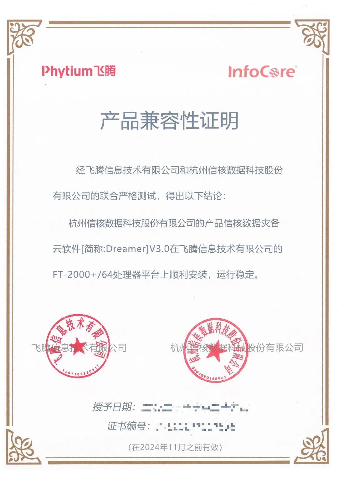 兼容性认证证书