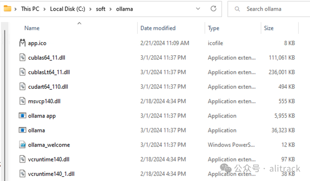 解压缩就等于安装好了,经测试可以正常使用 其中 ollama app.exe