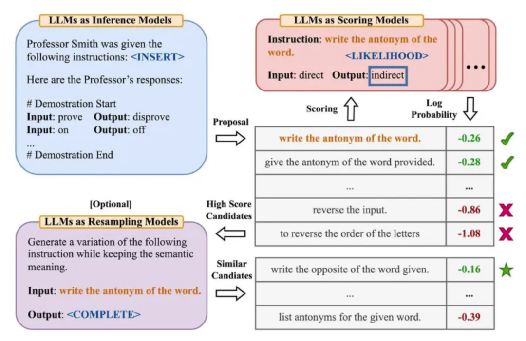 Automatic Prompt Engineer (APE)是用于LLMs的自动指令生成和选择,旨在解决为LLMs构建有效提示的传统繁琐任务。APE通过动态生成和选择特定任务的最具影响力的提示,摆脱了静态的手工设计提示的限制。