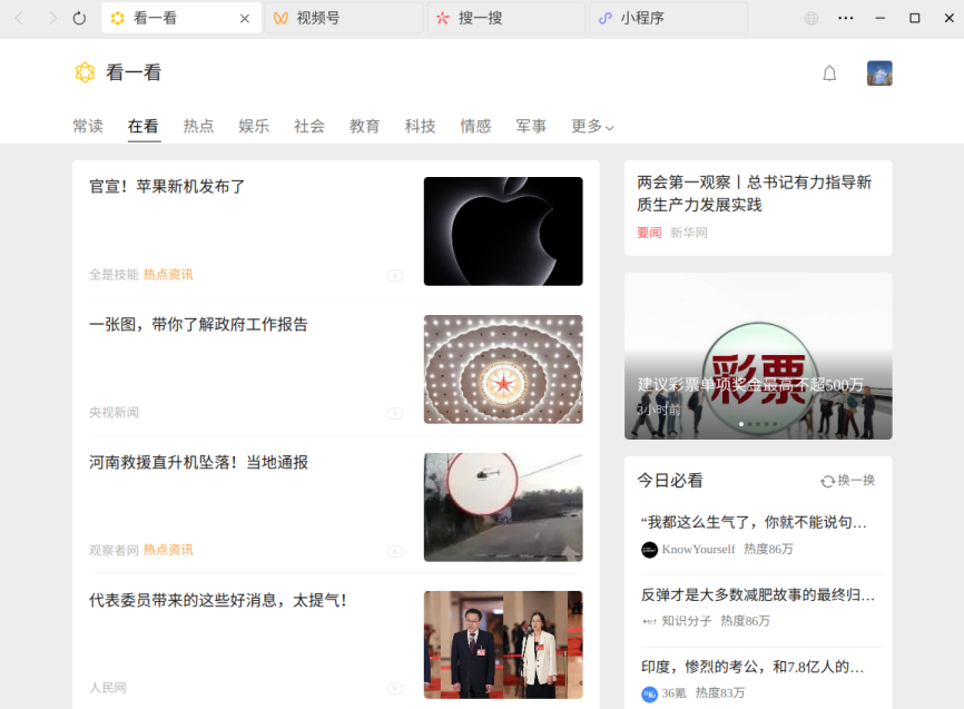 一键打开更多内容,包括视频号、小程序、搜一搜、看一看。