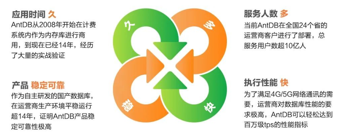 - 久——应用时间久,从2008年开始在计费系统使用,AntDB经历了14年精心锤炼。