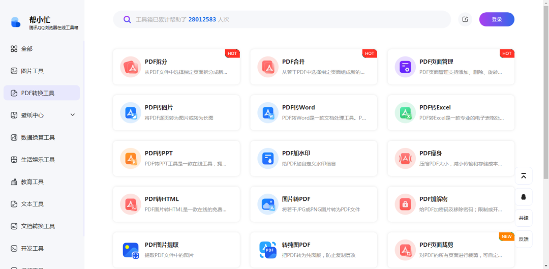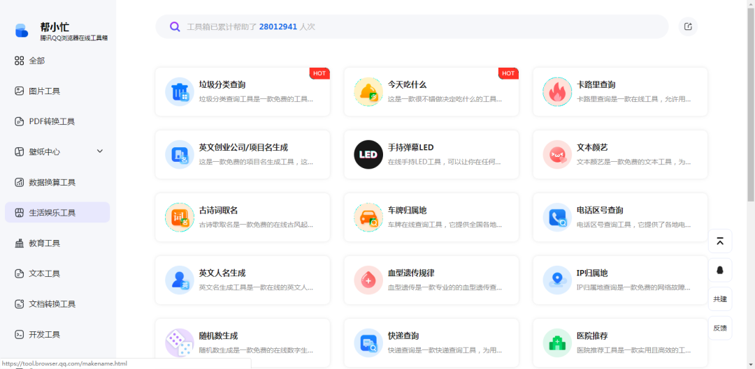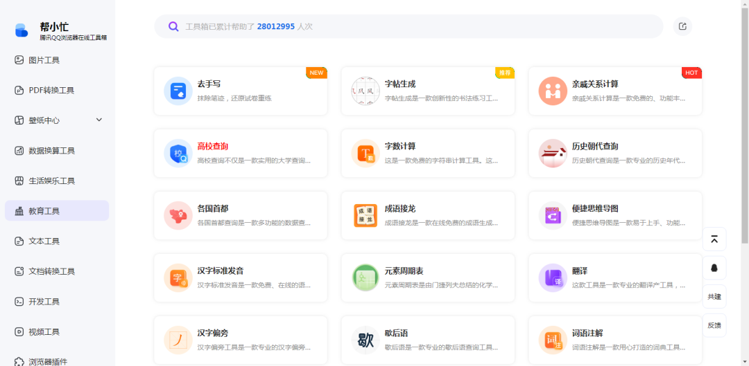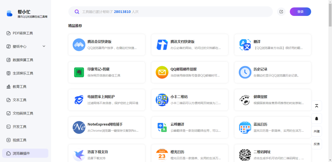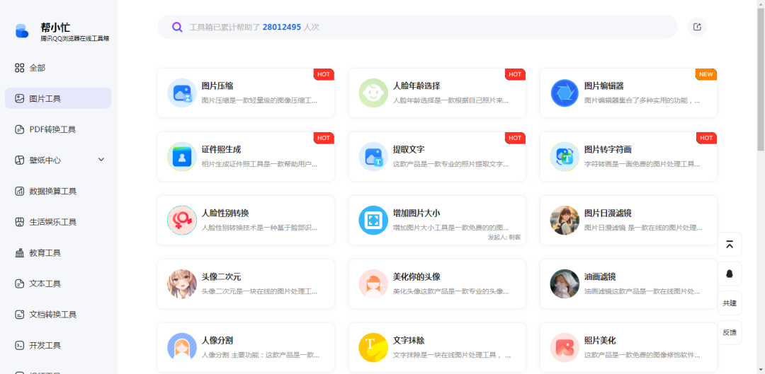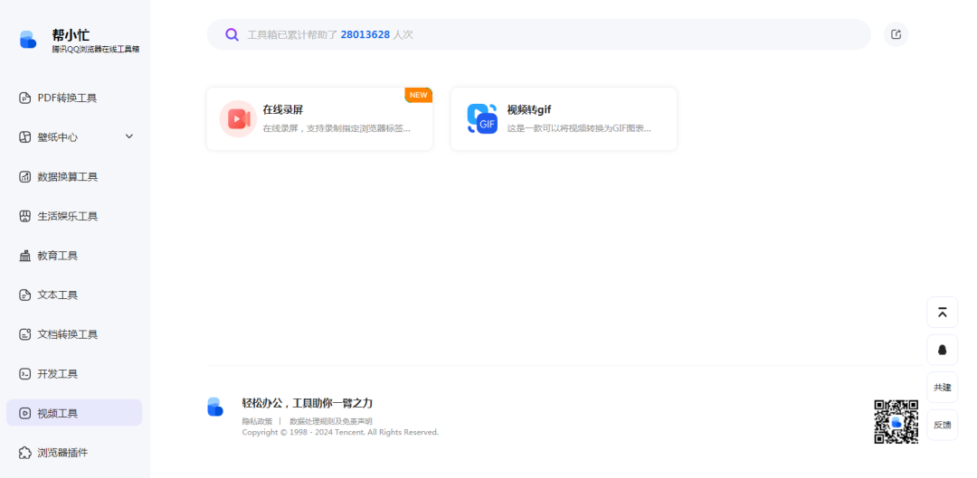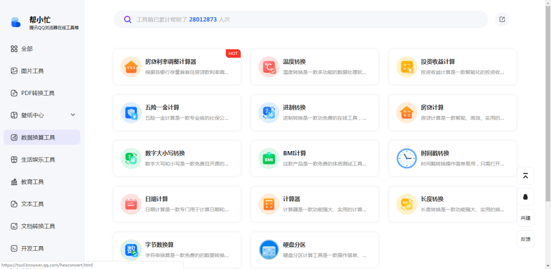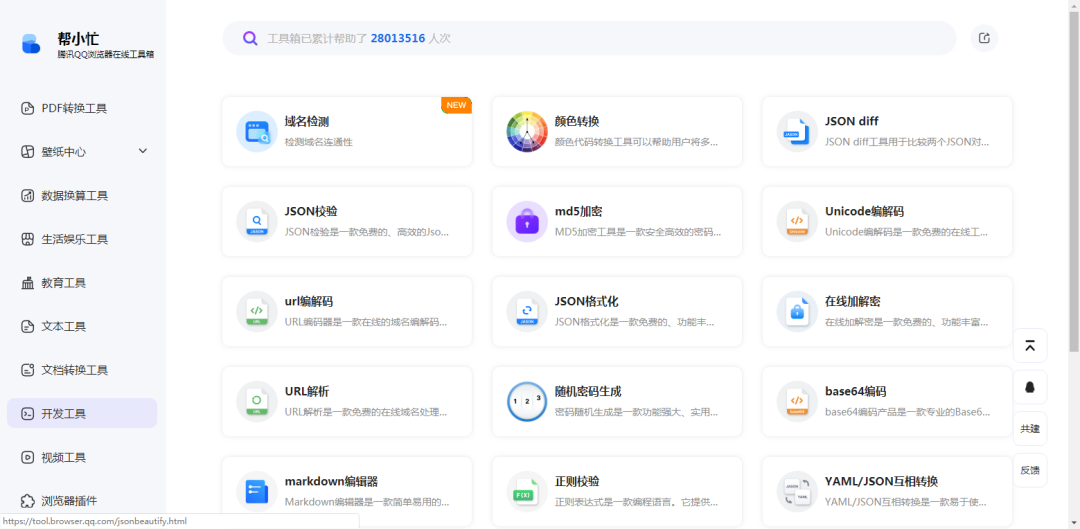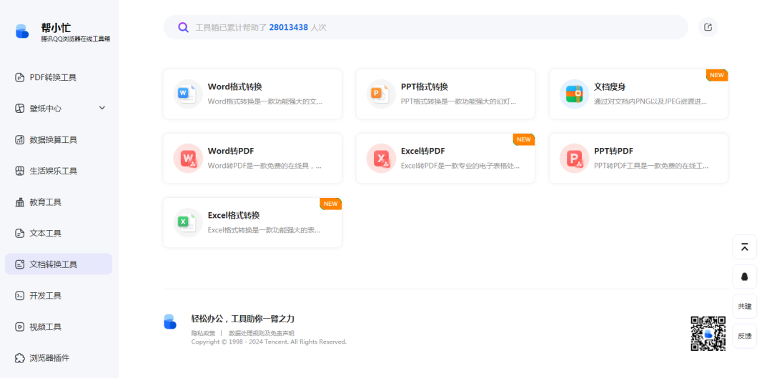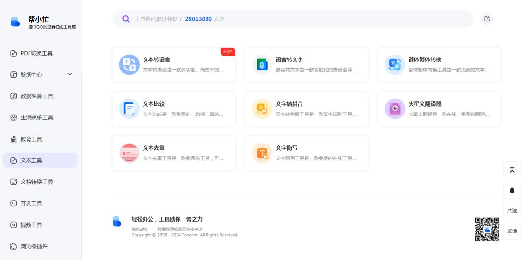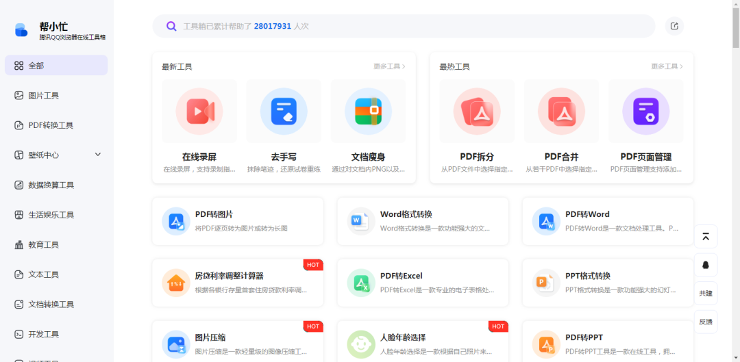 无论是需要处理文档、修复照片、生成二维码,还是进行数据校验等操作,腾讯QQ浏览器在线工具箱帮小忙平台都能为您提供全方位的帮助。无需下载、安装其他软件,只需打开浏览器,选择相应的工具,即可轻松完成您的任务。