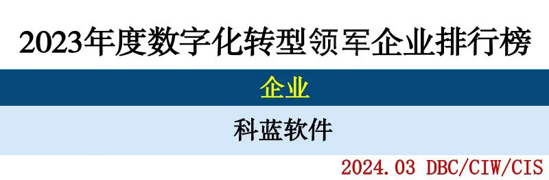 3月13日,由中国科学院《互联网周刊》、中国社会科学院信息化研究中心、eNet研究院、德本咨询联合发布的“2023数字化转型领军企业”排行榜发布。科蓝软件凭借其在数字金融、数字乡村、数字城市实践案例和创新能力荣获2023年数字化转型领军企业。