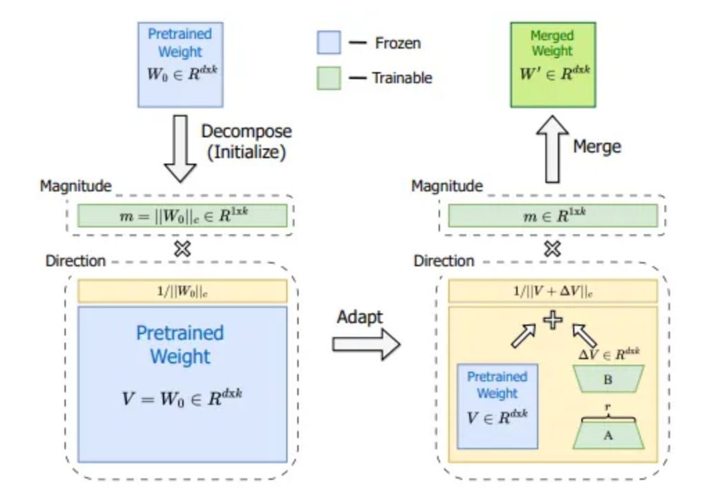 DoRA: Liu, S. Y., Wang, C. Y., Yin, H., Molchanov, P., Wang, Y. C. F., Cheng, K. T., & Chen, M. H. (2024). DoRA: Weight-Decomposed Low-Rank Adaptation. arXiv preprint arXiv:2402.09353.