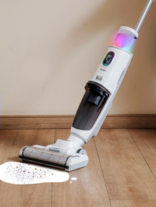 海尔手持洗地机采用高效马达,清洁能力强,噪音低。它还具备智能充电和多种刷头,可以满足不同场景的清洁需求。