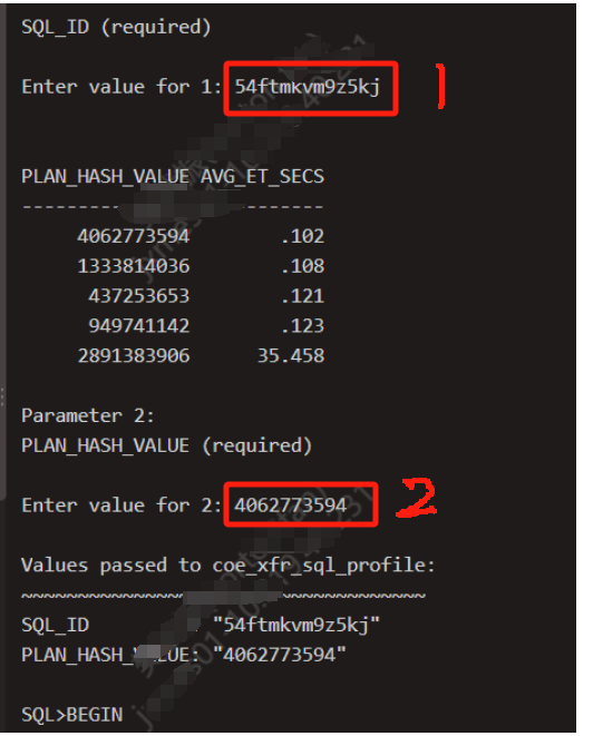 参数1:为问题sql id 参数2:为需要绑定的执行计划,执行结束后会生产一个sql如下