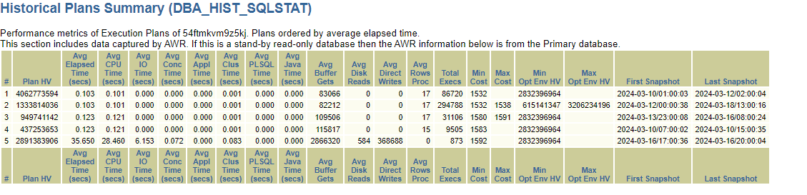 可以看到问题时段有几个执行计划选择了最差的2891383906,也就是造成系统卡顿的主要原因