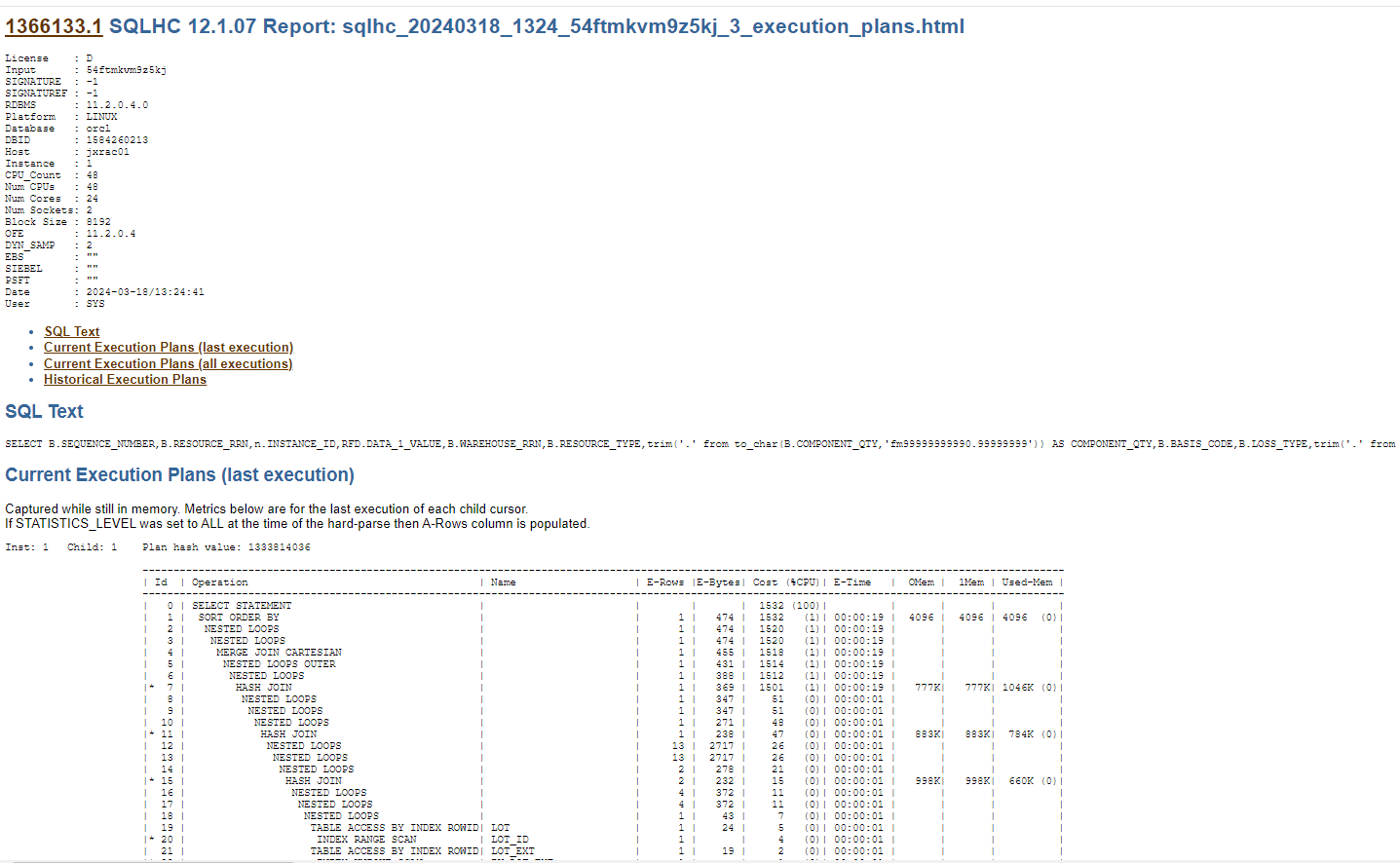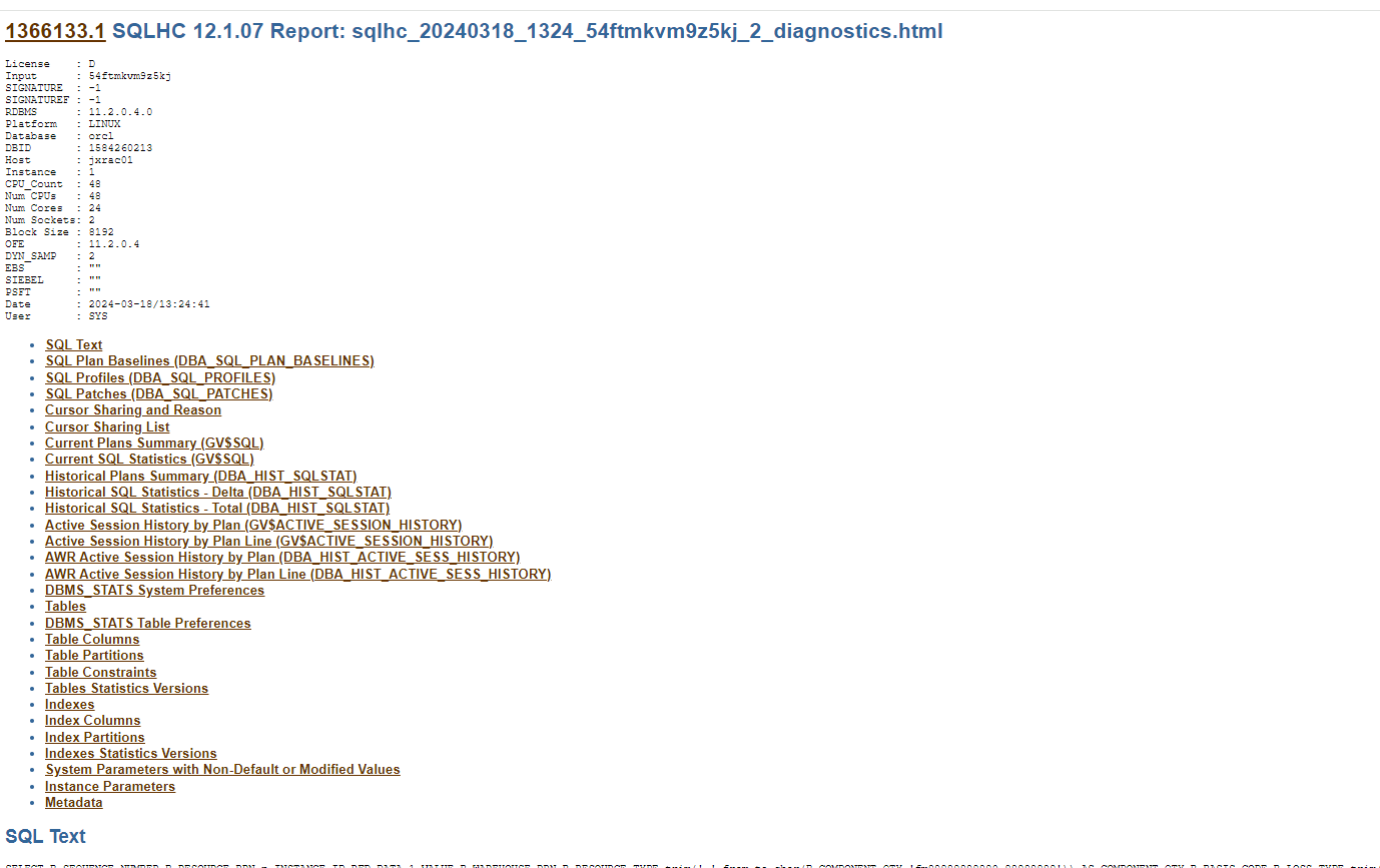 SQL Tuning Health-Check Script (SQLHC) (Doc ID 1366133.1)