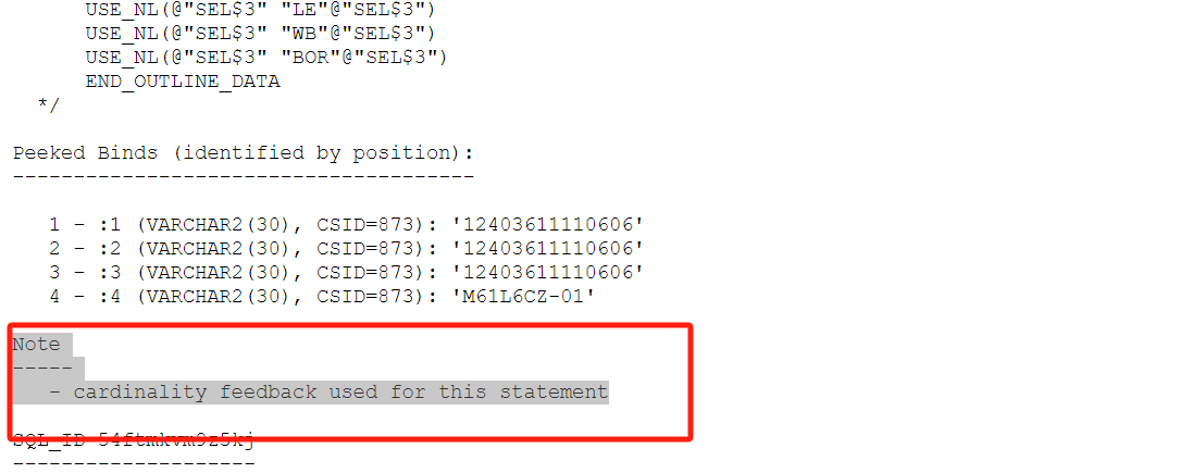 cardinality feedback used for this statement,表面改执行计划是因为基数反馈而从新生成的执行计划