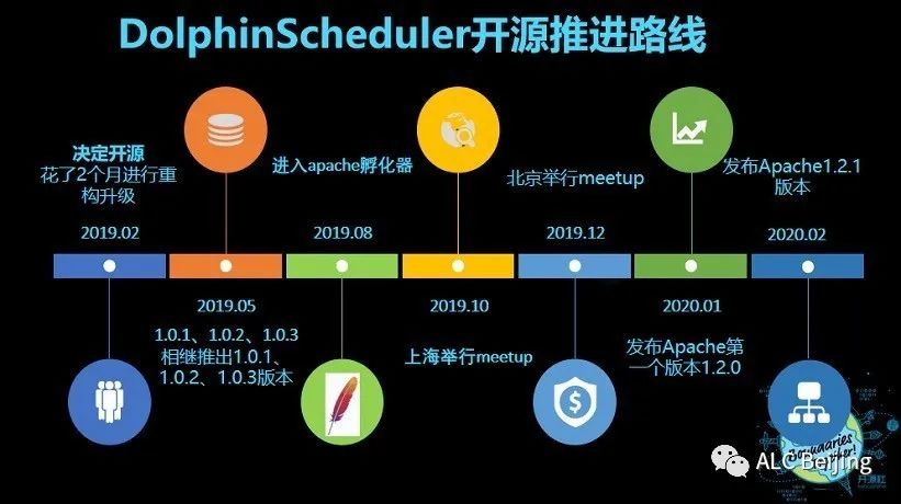 DolphinScheduler 是 2019 年开源的一个调度系统,在去年美国时间 2019 年 8 月29 号,分布式任务调度引擎 DolphinScheduler (原EasyScheduler) 正式通过顶级开源组织 Apache 基金会的投票决议,以全票通过的优秀表现正式成为了Apache 孵化器项目!