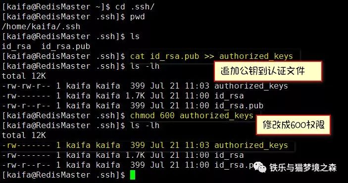 接下来要做的是将公钥追加到authorized_keys文件上(默认的名字,当然你也可以改)